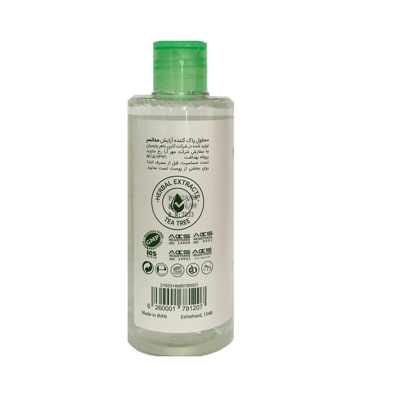 محلول پاک کننده آرایش مدانسر تولید شده با بهترین مواد اولیه با فرمولاسیون جدید و تکنولوژی میسلار واتر پوست صورت را از تمام مواد آرایشی پاکسازی نموده و باعث رطوبت رسانی به آن می گردد . محلول مدانسر با دارا بودن ماده موثره زینک از التهابات پوستی جلوگیری می نماید و حساسیت زا نمی باشد . محلول مدانسر مناسب صورت ، لبها و چشمها بوده و با خیالی آسوده بدون نیاز به شستشو و آبکشی پس از مصرف از آن استفاده نمایید . محلول آرایش پاک کن مدانسر عاری از هرگونه ماده شیمیای مضر برای پوست و همچنین پارابن ، اسانس ، الکل ، روغن و مشتقات حیوانی می باشد .